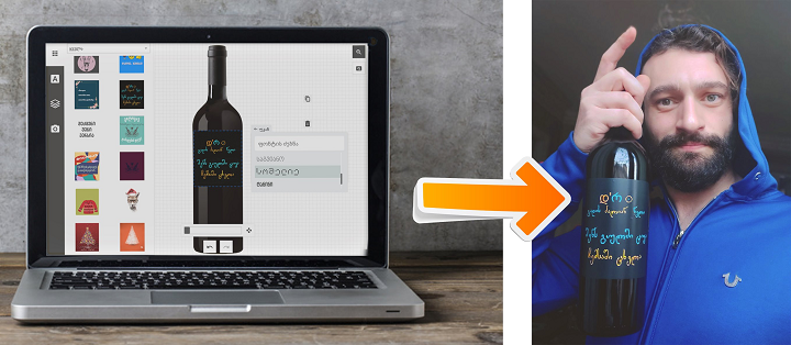 ეტიკეტის შაბლონური დიზაინები, სადაც შეგიძლიათ ცვლილებების შეტანა და მისი საჩუქრის ადრესატისთვის მორგება, პროფესიონალი დიზაინერების მიერ არის შექმნილი. ამ დიზაინერების სიას მალე ცნობილი სახელებიც შეემატება. წარმოიდგინეთ, მეგობარს აჩუქებთ ღვინოს, რომლის ეტიკეტიც სპეციალურად მისთვის მაშო მარგიშვილმა ან Zmudart-მა (ლევან ამაშუკელმა) შექმნა.