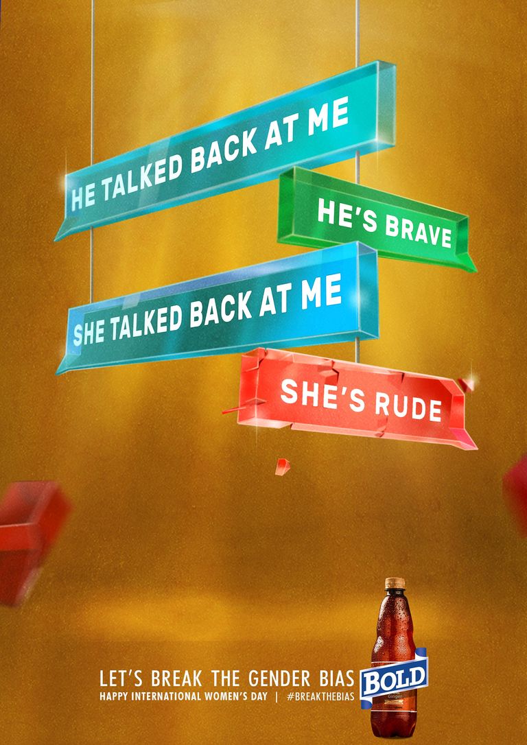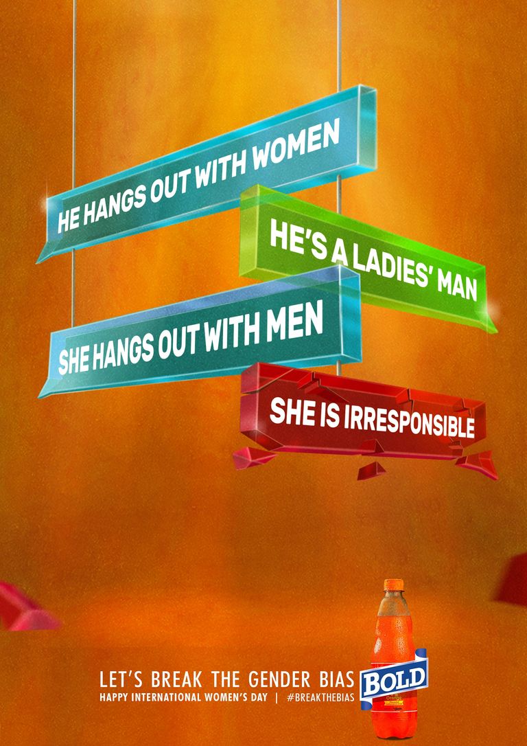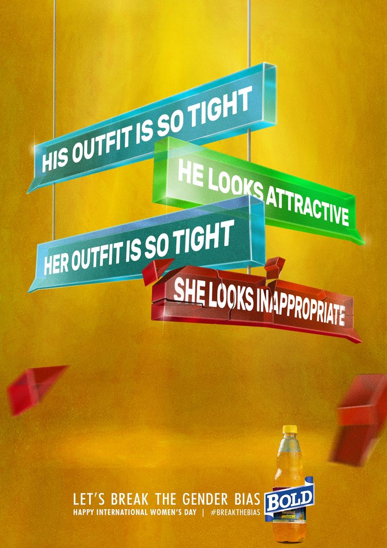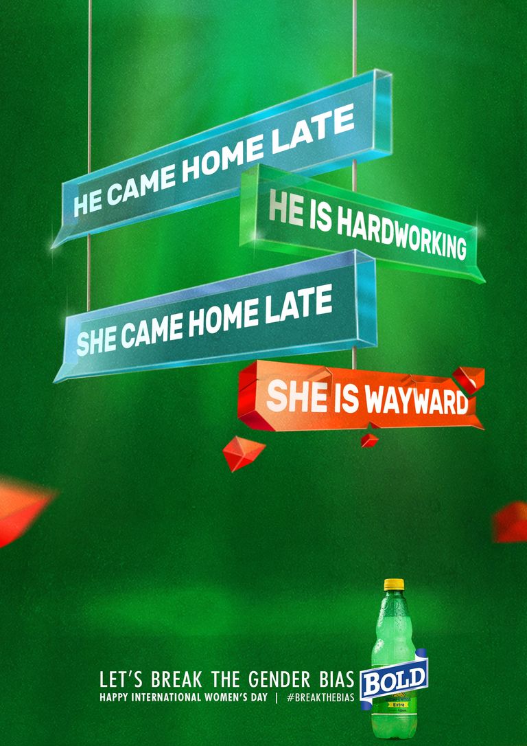 თუ სახლში მისვლას აგვიანებთ, პასუხს აბრუნებთ ყოველთვის, როცა საჭიროდ მიიჩნევთ, უპირატესობას მჭიდრო სამოსს ანიჭებთ ან მეზობელმა საპირისპირო სქესის წარმომადგენელთან ერთად შეგამჩნიათ, შესაძლოა, განსხვავებული შეფასებები დაიმსახუროთ, იმის მიხედვით, კაცი ხართ თუ ქალი. ერთსა და იმავე აქტივობაზე გენდერული ნიშნით ჩამოყალიბებული მიკერძოებული დამოკიდებულებები იმდენად შესამჩნევია, რომ ნიგერიული არაალკოჰოლური სასმლის კომპანია Bold-მა მათ თავი ბეჭდურ კამპანიაში მოუყარა და ქალთა საერთაშორისო დღე, ასე მოგვილოცა. კამპანია გენდერული სტერეოტიპებისა და დისკრიმინაციული რეაქციების წინააღმდეგაა მიმართული. სააგენტო X3M Ideas-მა კომპანია Bold-ის ჩანაფიქრის განსახორციელებლად ილუსტრაციები შექმნა. მათზე გამოსახული ტექსტური შეტყობინებები, ფერები და მსხვრევის მიმანიშნებელი დეტალები, ხაზს საზოგადოებაში გენდერული ნიშნით შექმნილი უთანასწორო შეფესებების მანკიერებაზე უსვამს.