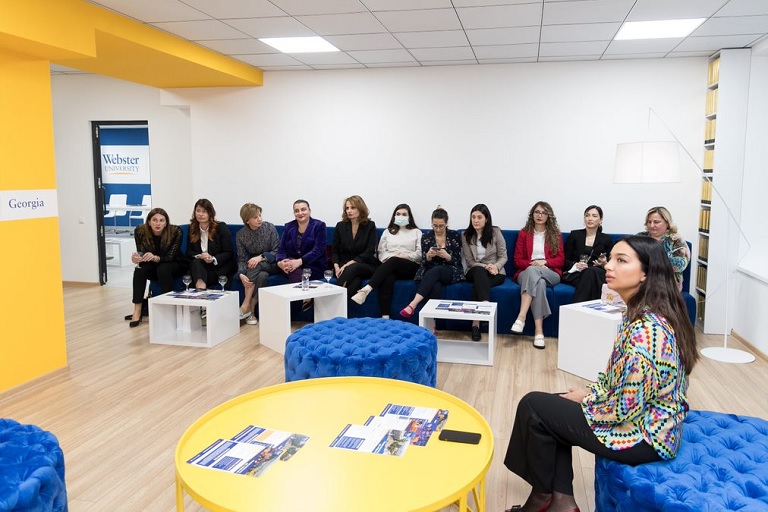 შეხვედრა Webster Georgia-ს ფილიალის ცენტრალურ კორპუსში ჩატარდა. ღონისძიებას წარადგენდნენ: ბიზნესისა და ტექნოლოგიების უნვერსიტეტის რექტორი ნინო ენუქიძე, Webster University Georgia-ს პროექტების ხელმძღვანელი მაია ნონიაშვილი და ორგანიზაციის „ქალები მომავლისთვის“ თავმჯდომარე ნინო კობახიძე.