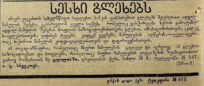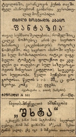 სტატიაში გამოყენებული სარეკლამო განცხადებები, 1884-1906 წლებში, გამოქვეყნებულია გაზეთებში: