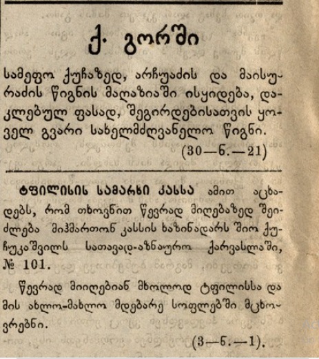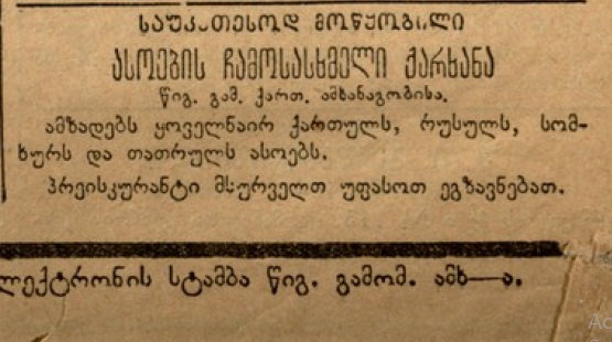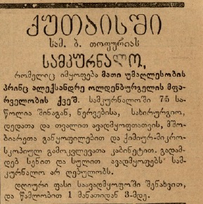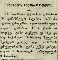 - „ივერია“ – #113 – 1886 წელი; #138, #155 #189 – 1902 წელი