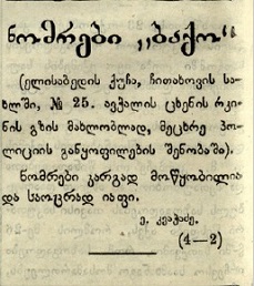 წყარო: საქართველოს პარლამენტის ეროვნული ბიბლიოთეკა, ციფრული ბიბლიოთეკა „ივერიელი“.