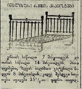 მაგალითად, აქ შეხვდებით „ინგლისური რკინის კრავოტების“ რეკლამას.