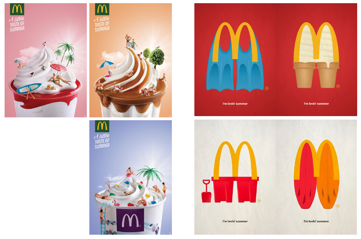 მაგალითად, ჩვენ ვხედავთ Jo Malone-ის მცდელობას, მომხმარებლები ზაფხულის სადღესასწაულო სულისკვეთებით მოიცვას. ბრენდი ამ ატმოსფეროს შესაქმნელად თეთრ და ლურჯ პლედს, კლასიკური შვრიის ლუქებს, ნამცხვრებს და ჟელეს იყენებს. მაკდონალდსი და მალიბუ კი თავიანთ სიმბოლოს იუმორისტულად გარდაქმნიან, რაც ნამდვილად სახალისოდ გამოიყურება…